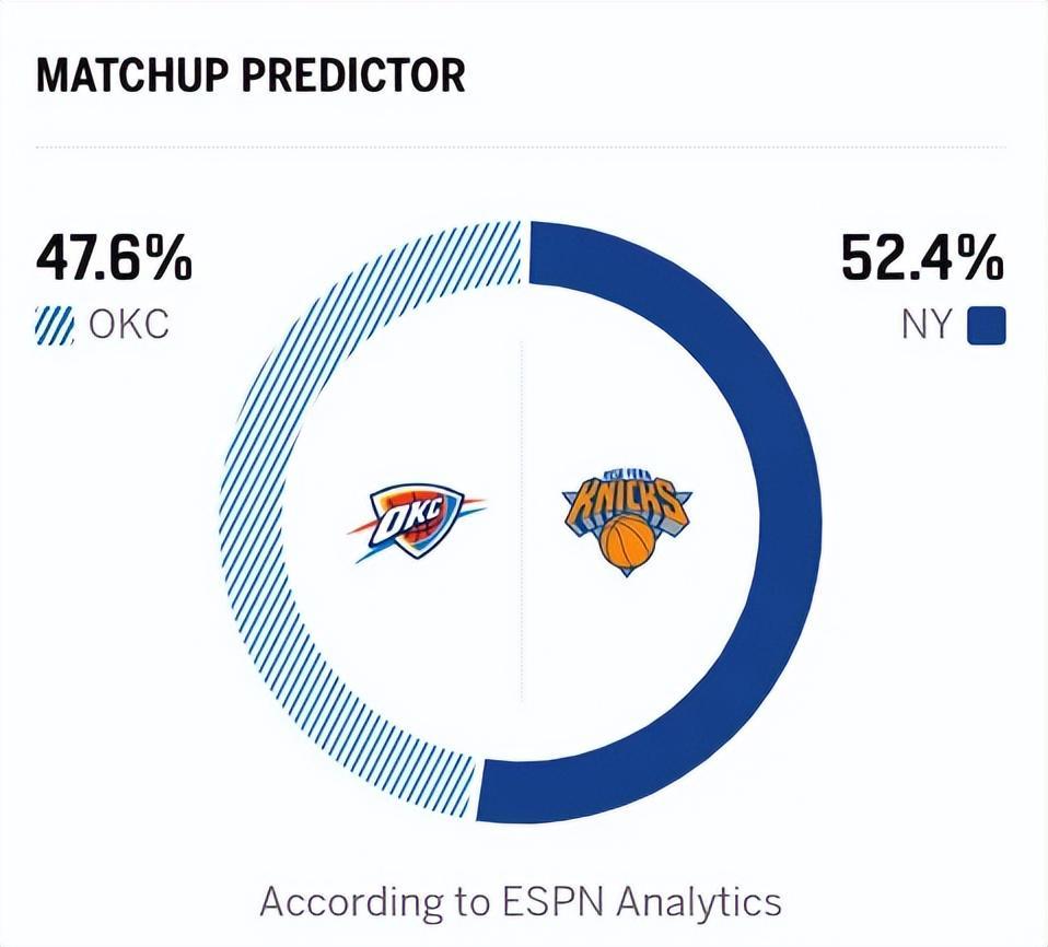北京时间3月5日,NBA常规赛继续进行,雷霆客场挑战尼克斯!上场比赛,雷霆击败公牛拿到3连胜,赛前以48胜15负的战绩领跑西部,虽然他们近期的统治力不如赛季前期那么强势,但凭借深厚的阵容仍能稳定抢胜保住战绩排名。上一场打公牛,亚历山大不打,但雷霆6人得分上双,其中5人拿到至少17分,这就是雷霆的底牌之一。尼克斯上场赢了猛龙后,同样3连胜,近6战拿到5场胜利,40胜22负位列西部第三,期间他们击败过西部的火箭、马刺等强队。与猛龙的一战,布伦森拿到26分10助攻,唐斯拿到21分12篮板!此役。亚历山大复出,不过,ESPN仍看好尼克斯能守住主场,他们预测本场比赛的结果——雷霆胜率47.6%,尼克斯胜率52.4%。